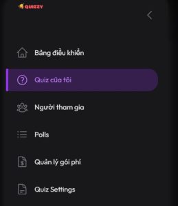 Bước 2: Sau khi đăng ký tài khoản thành công, tại bảng điều khiển bên trái, chọn: Quiz của tôi.